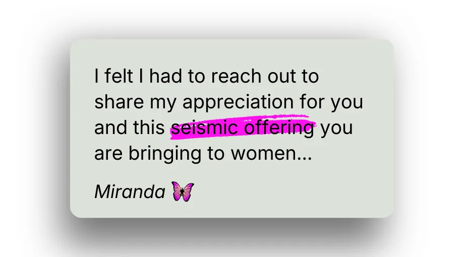 This workshop is a standalone. Youâll be told about Firestarter if you want deeper support (some women do). You wonât be pressured, shamed, or put through a scarcity circus. Buy the workshop for the workshop