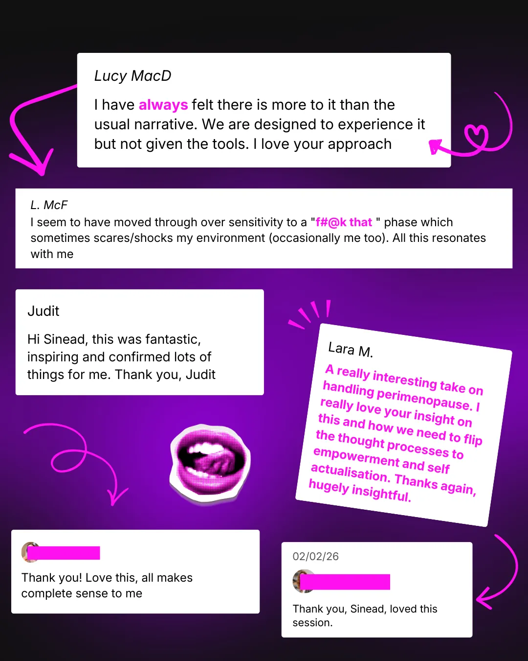 This isnât âadd more supplements + meditate more.â Itâs a pattern-break. Youâll get language for whatâs happening, permission to stop gaslighting yourself & a practical way to work with your symptoms as signals - not enemies. Itâs less fix yourself energy, more - come back to remembering your embodied truth